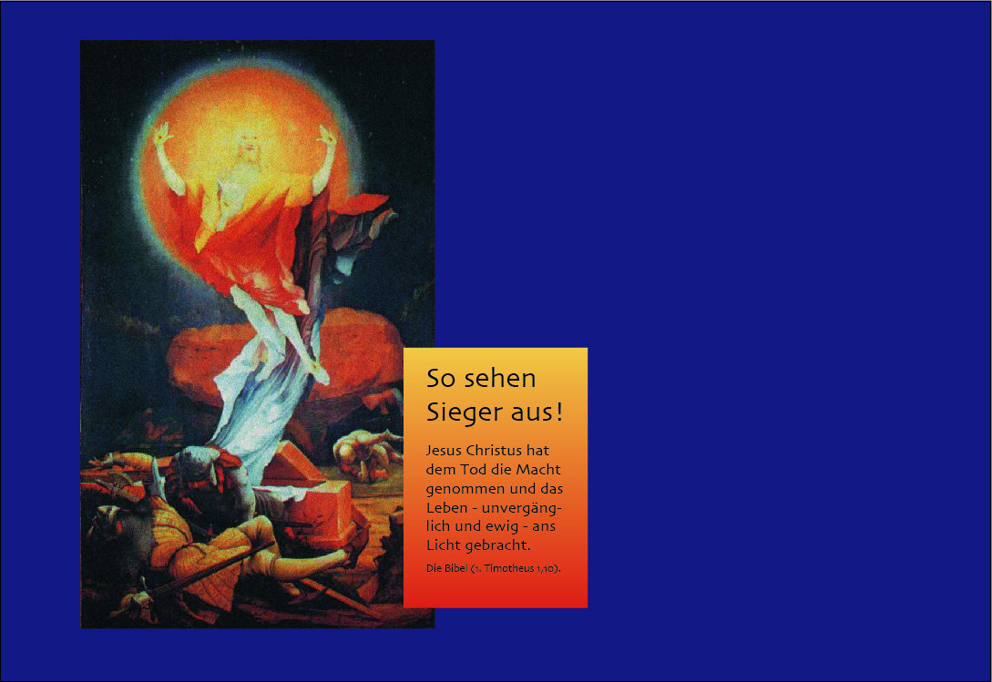 "Der Tod ist tot" - so haben wir es auf einen Grabstein "gemeißelt". Der Grabstein - Symbol der Todesmacht - wird zur