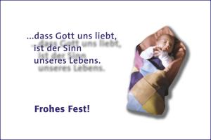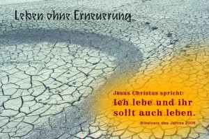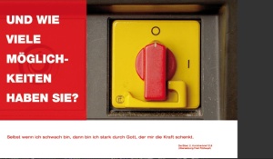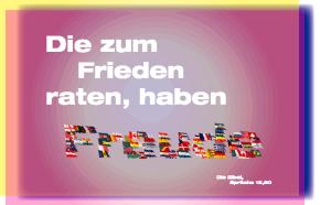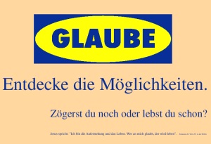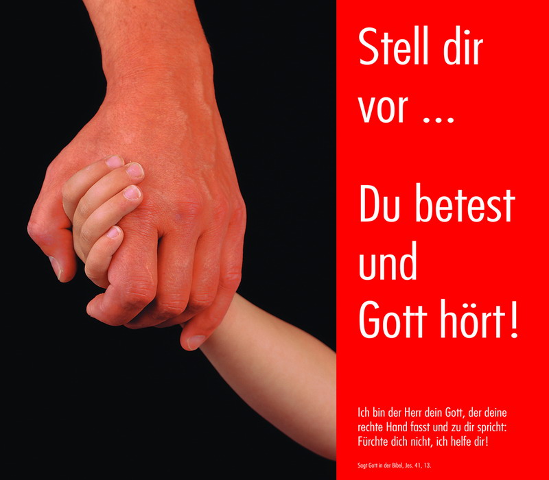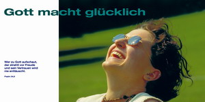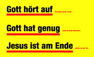 Gottes Lösung wird am unteren Plakatrand genannt - die Jahreslosung 2002: Ja, Gott ist